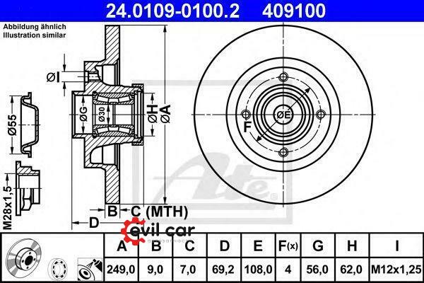 Диск торм.задн.[250x9] 4 отв.с подш.ступ.(ABS) ATE 24010901002